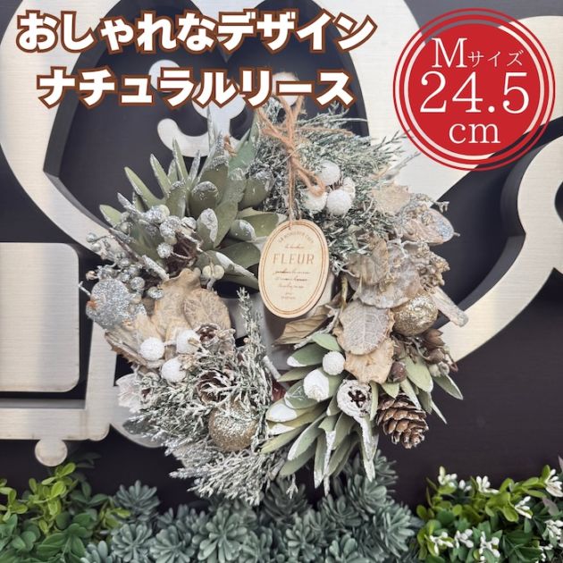 お花のリース ナチュラル Mサイズ 約25cm 玄関 お花 紙スタンド付き プレゼント クリスマス ギフト おしゃれ 造花 高級 豪華 かわいい飾り